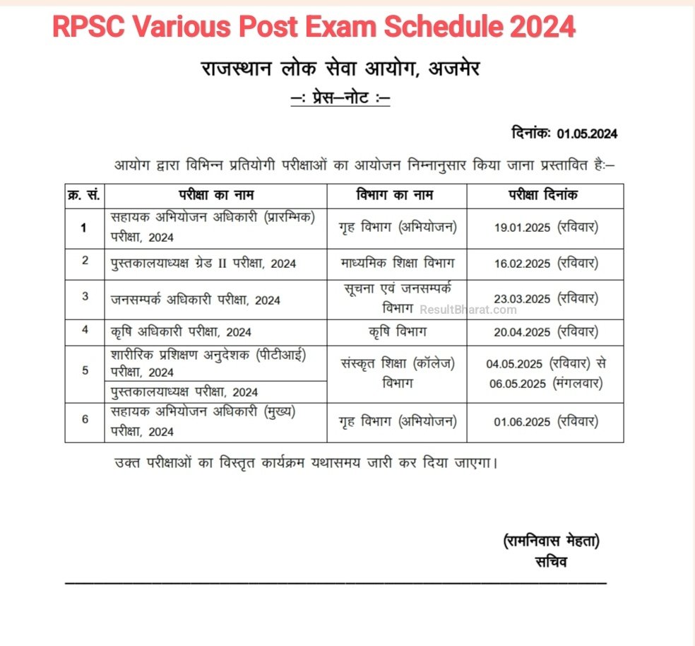 ResultBharat.on X: “#RPSC Various Post Exam Schedule 2025